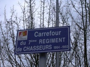 La plaque destinée à baptiser le carrefour du 7e Chasseurs située en face de l'entrée de la citadelle a été inaugurée le 17 juin 1993, quelques jours avant la dissolution du régiment, par le Colonel d'Astorg, dernier chef de corps et le sénateur maire Léon Fatous.